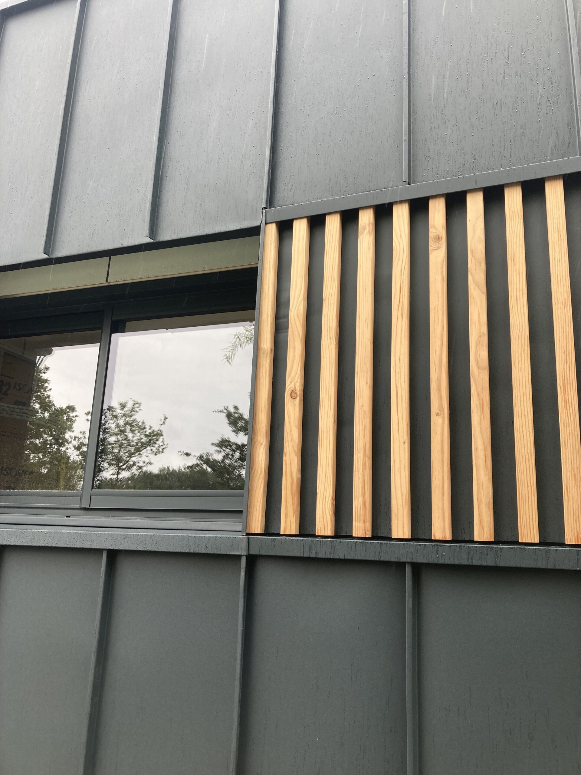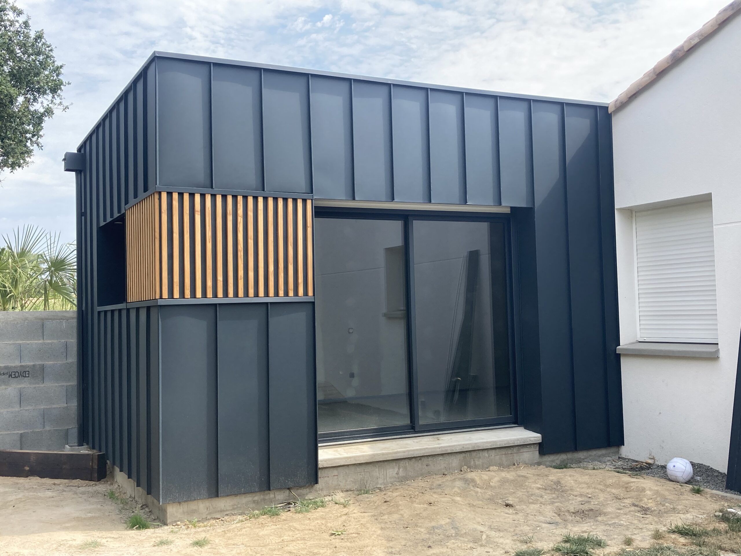 Création d’un bardage en alu RAL 7016 et son claire-voie en bois.